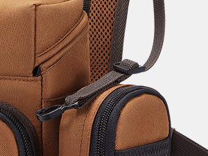 Smart Outdoor Details: Stay prepared with an integrated rain cover stored at the bottom and a built-in lens cloth in the front pocket. Mesh-lined straps and back panel ensure long-lasting breathability and comfort.