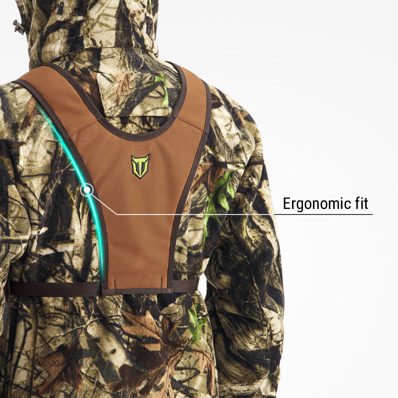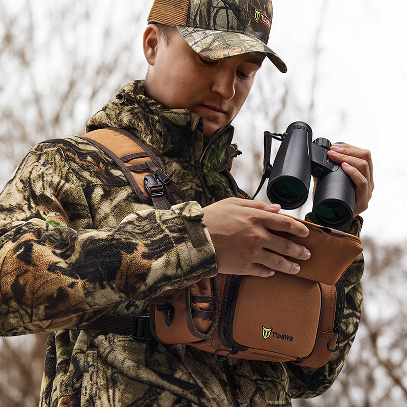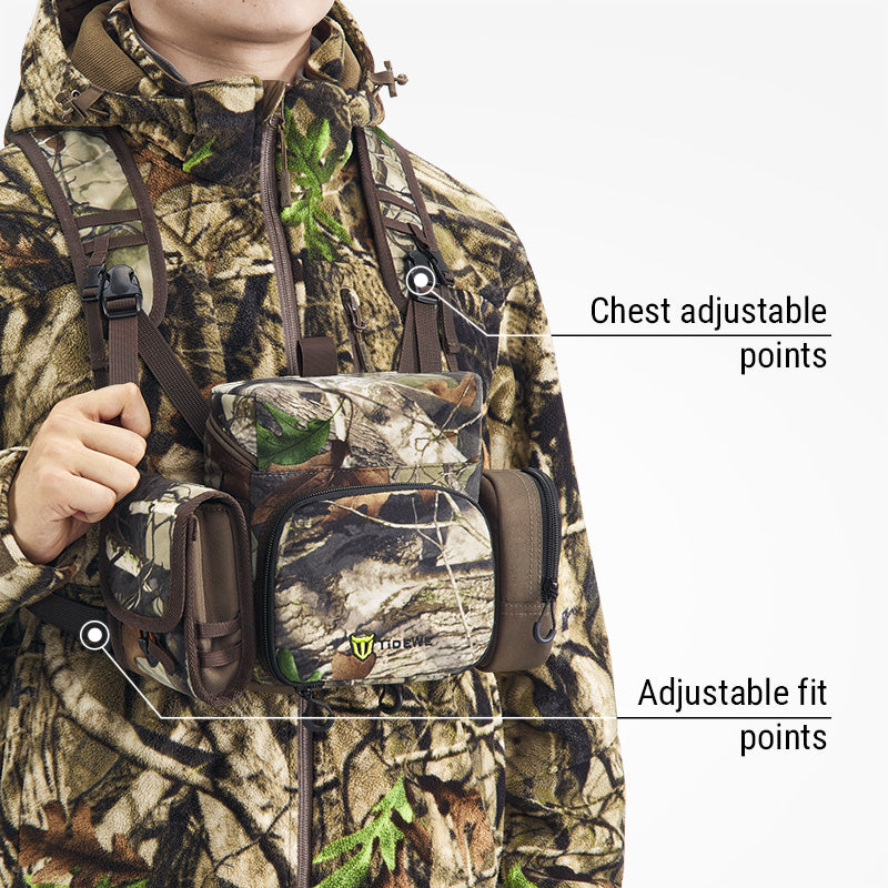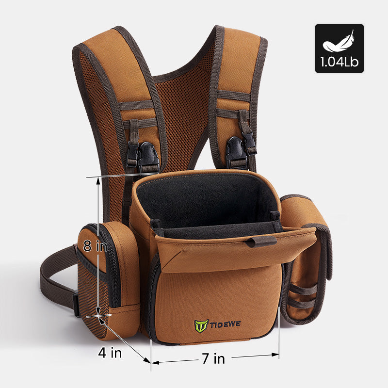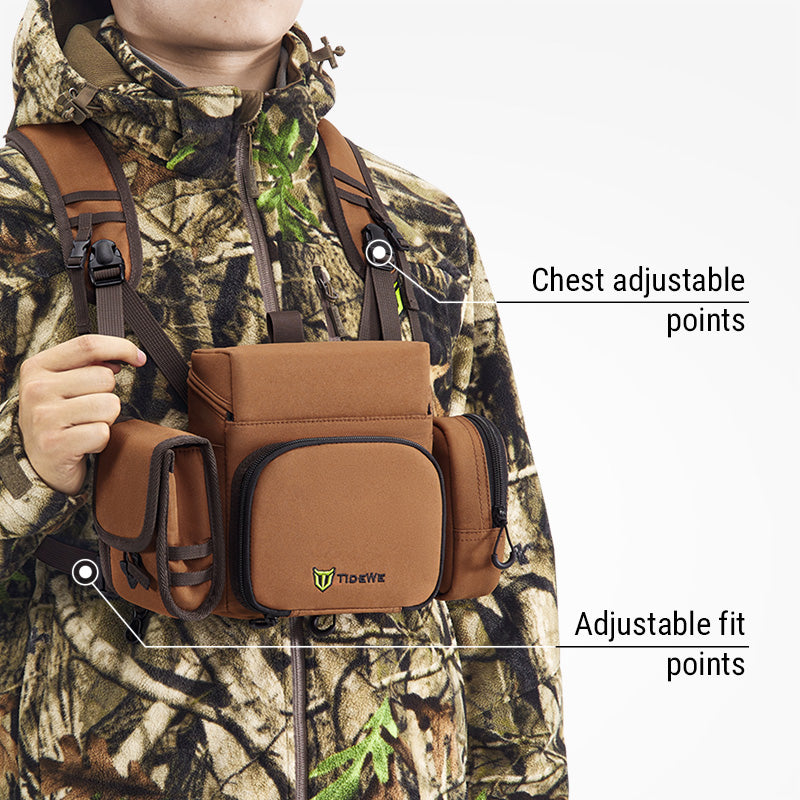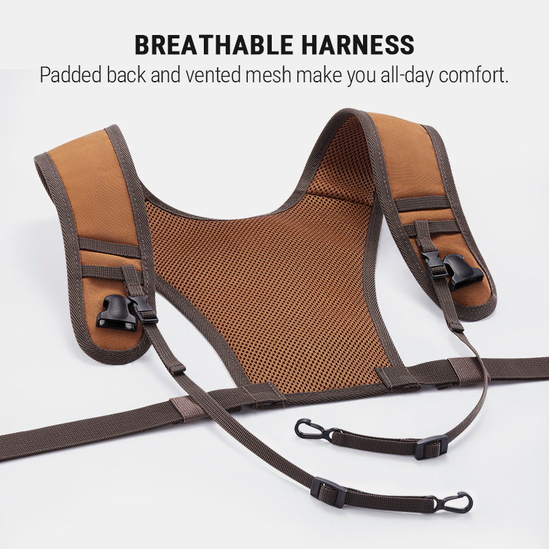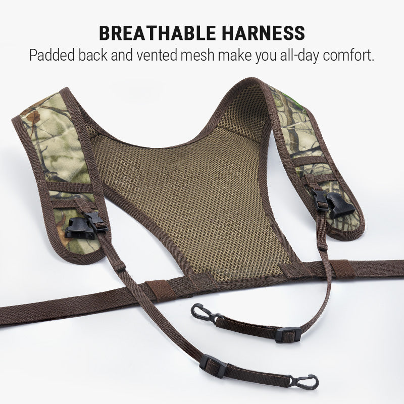 Snug & Adjustable Fit: 6 adjustment points—4 for body fit, 2 for bino tethering. Simply pull the cords to tighten. Designed to stay secure during fast movement, running, or hiking