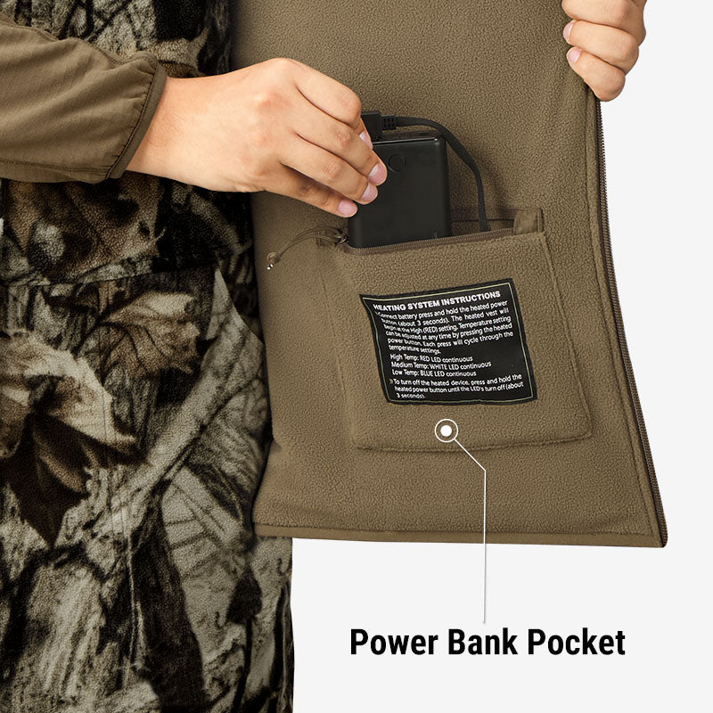 This polar fleece heated vest is designed to be worn as a mid-layer under a jacket. It features double-sided polar fleece for enhanced warmth, offering outstanding comfort, wind resistance, and cold protection. The silent polar fleece ensures hunters remain undetected. With 4 Carbon Nanofiber heating zones and up to 10 hours of heating, this vest provides lasting warmth for hunting, ice fishing, ice hockey, and outdoor work. Enjoy reliable warmth and comfort in any setting with this essential piece of gear.