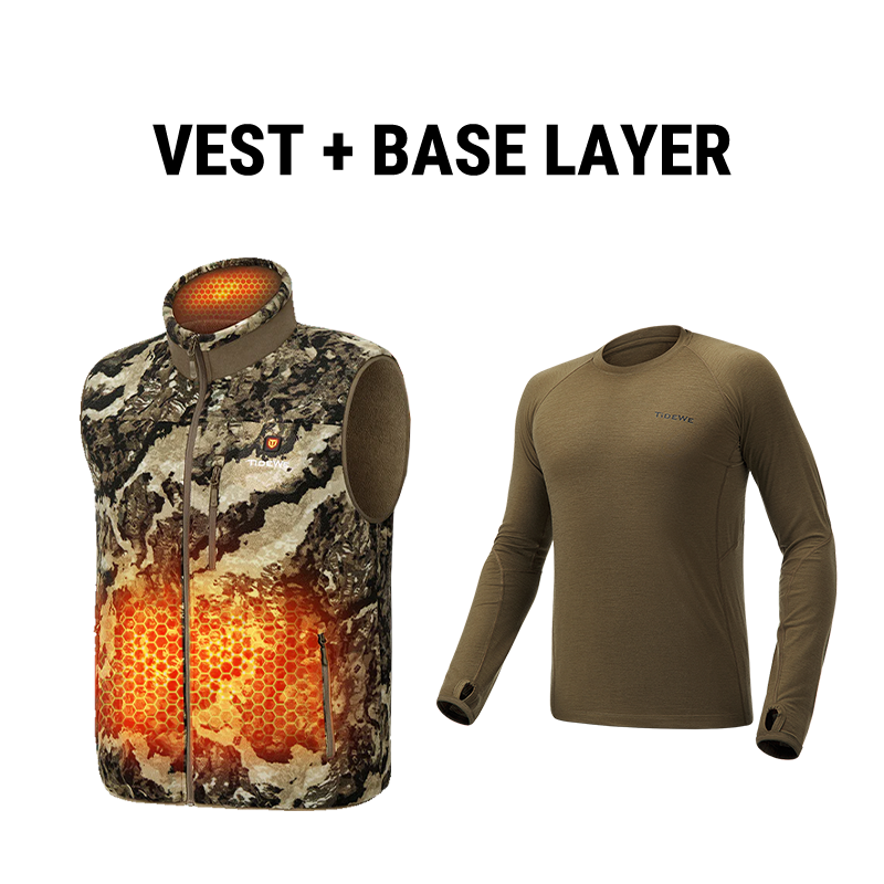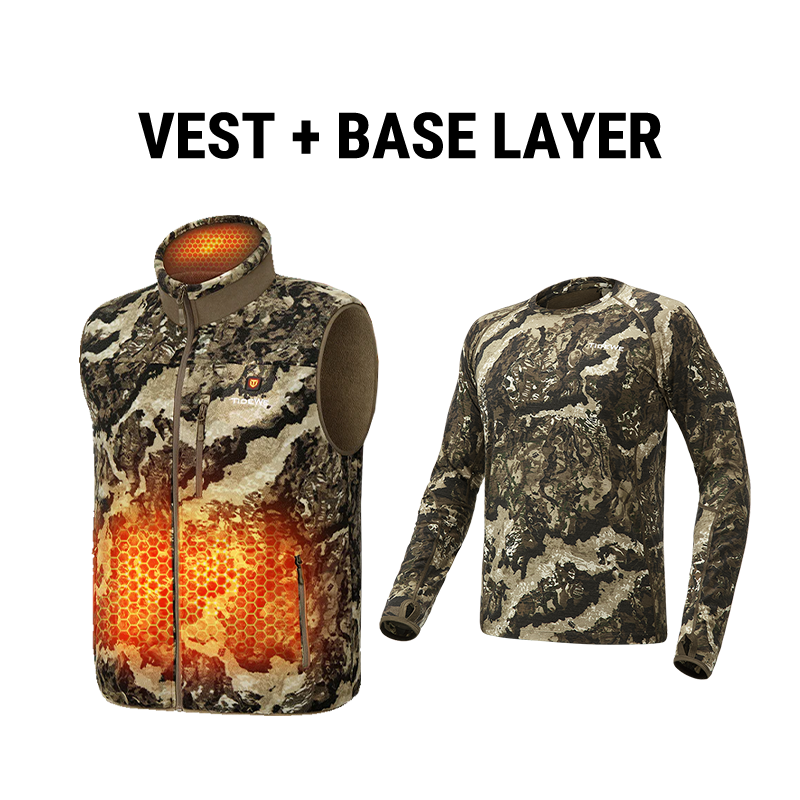 ThermCore Men's Heated Polar Fleece Hunting Vest and Merino 150 Wool Base Layer Bundle
