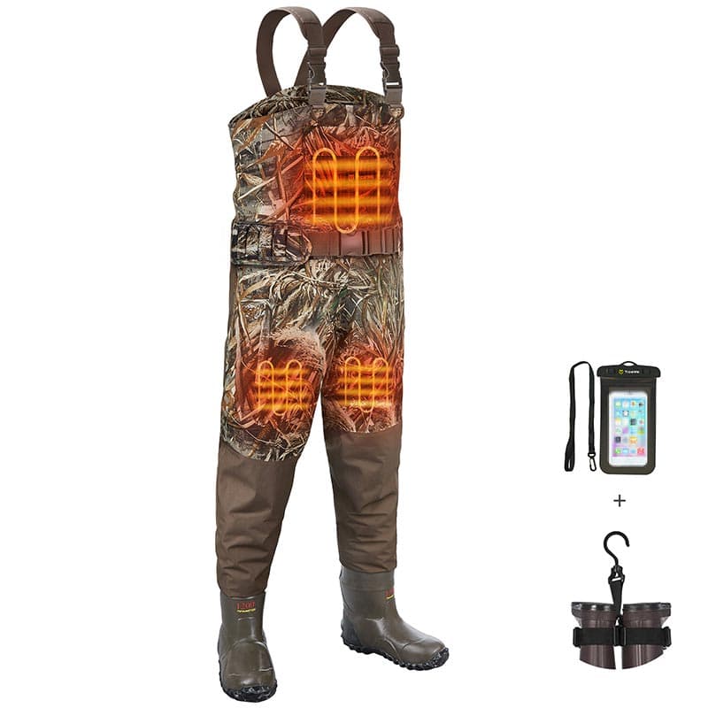 TorridWade Heated Waders for Duck Hunting | Men’s Bootfoot Chest Breathable Waders | Camo Insulated Waterproof Waterfowl Hunting Bibs for Men