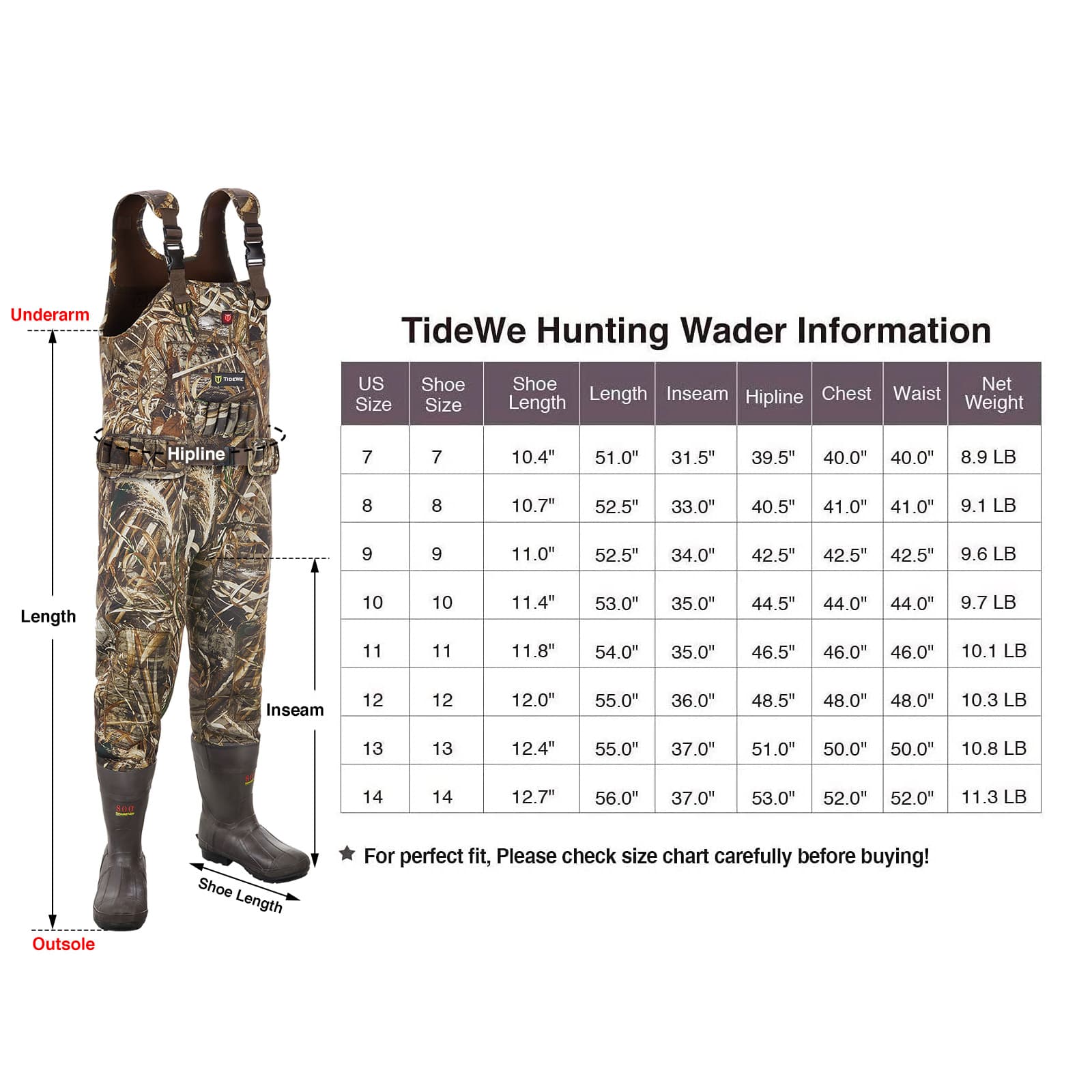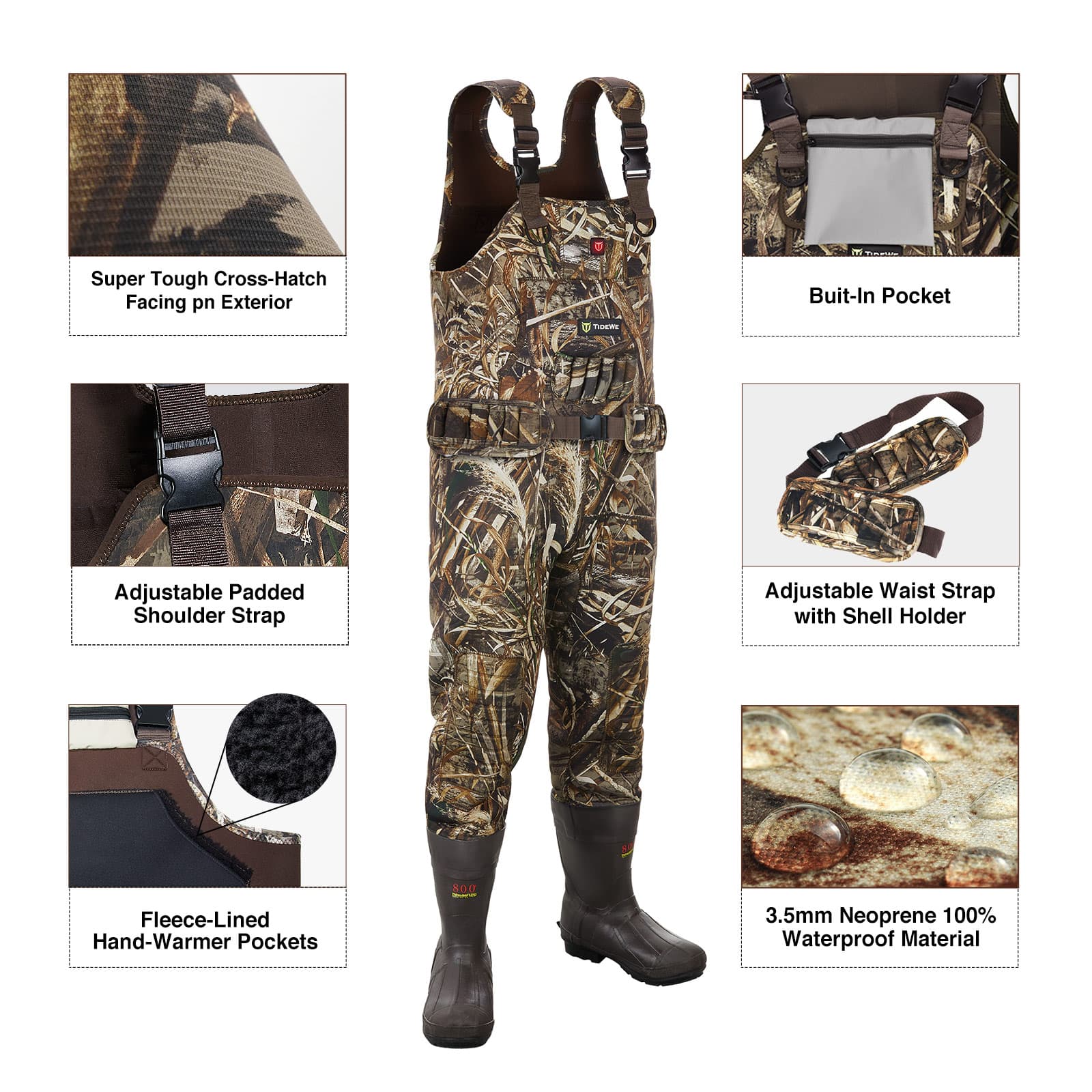 Sturdy & Durable: 3.5 mm neoprene upper with tough poly / jersey shell and stretch liner and triple-finished seams that are stitched, glued and taped, makes it extra solid and durable, you will always have peace of mind that your waders will perform while out in the waters and woods hunting and fishing.