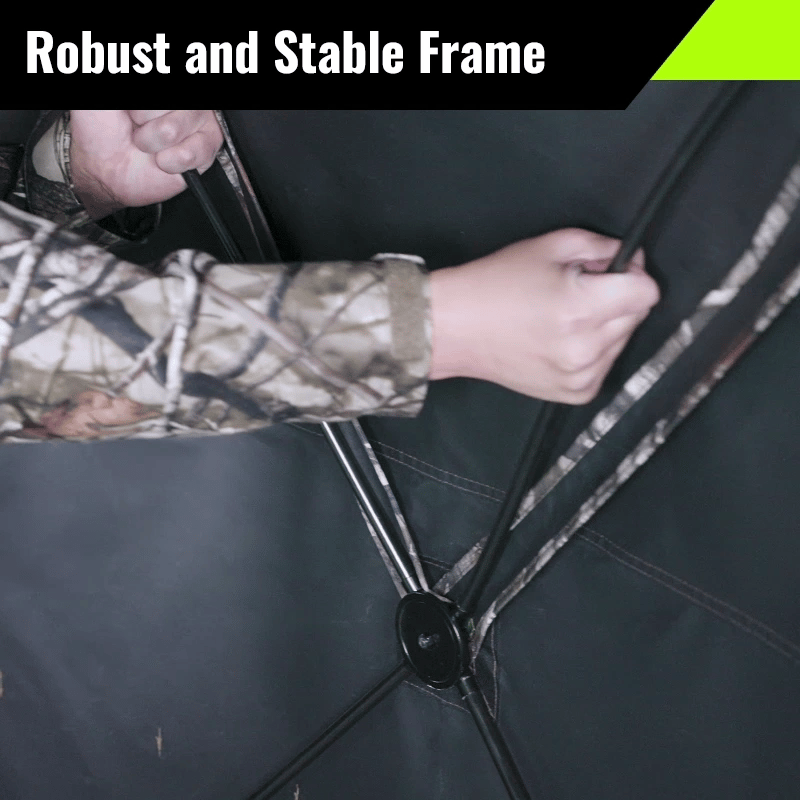 Excellent Stealth: The OptiVue features four one-way see-through windows with built-in blackout window panels, allowing for adjustable visibility and concealment. The half-panel see-through design also ensures optimal stealth during sunrise and sunset while enhancing wind resistance in cold seasons. Its noise-free design includes G-hooks and magnets on the door, complemented by quiet slides on the windows and curtains. Camo straps further enhance environmental blending, ensuring you stay hidden in any environment.