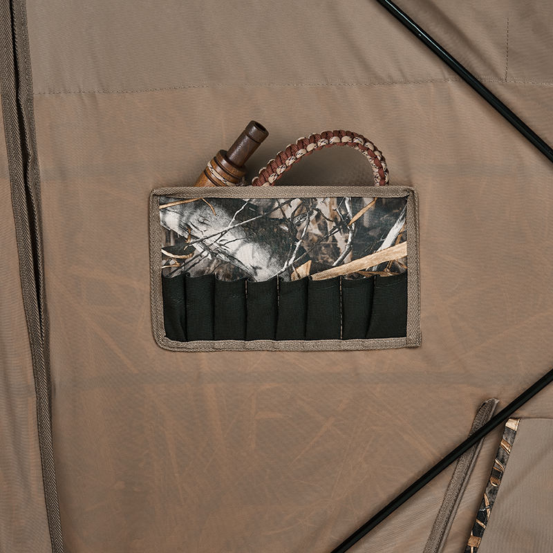 - Brush-in loops with the camo that covers the entire blind give you the confidence that your blind will become one with surrounding habitat.