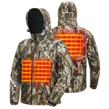 Heated Jacket for Men | Waterproof Heated Softshell Hunting Coat with 5V Battery Pack & Detachable Hood | Plus Size Heated Camo & Fishing Jackets