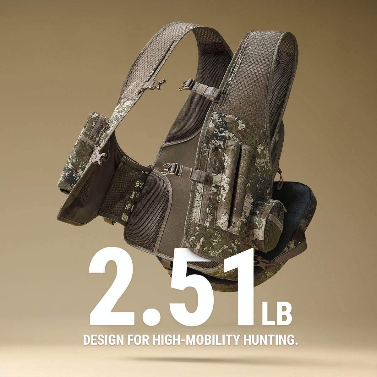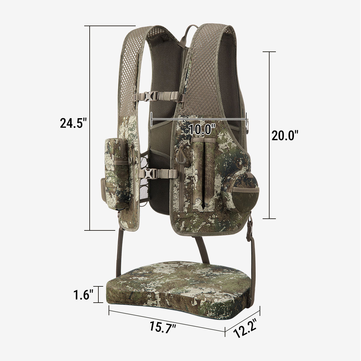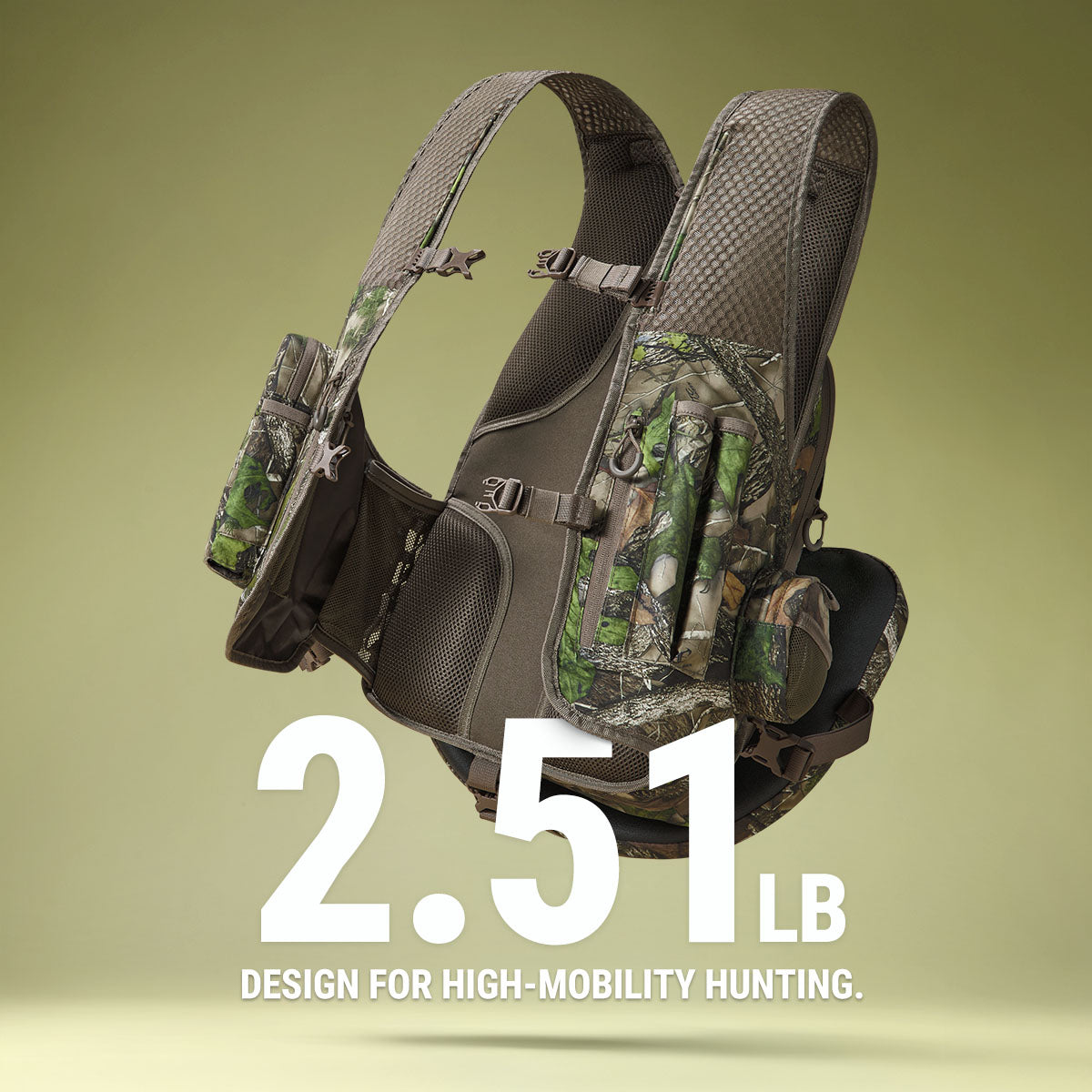 Designed for high-mobility turkey hunters, this vest features an ultra-light, vest-style fit that allows full freedom of movement for mobile turkey hunting.