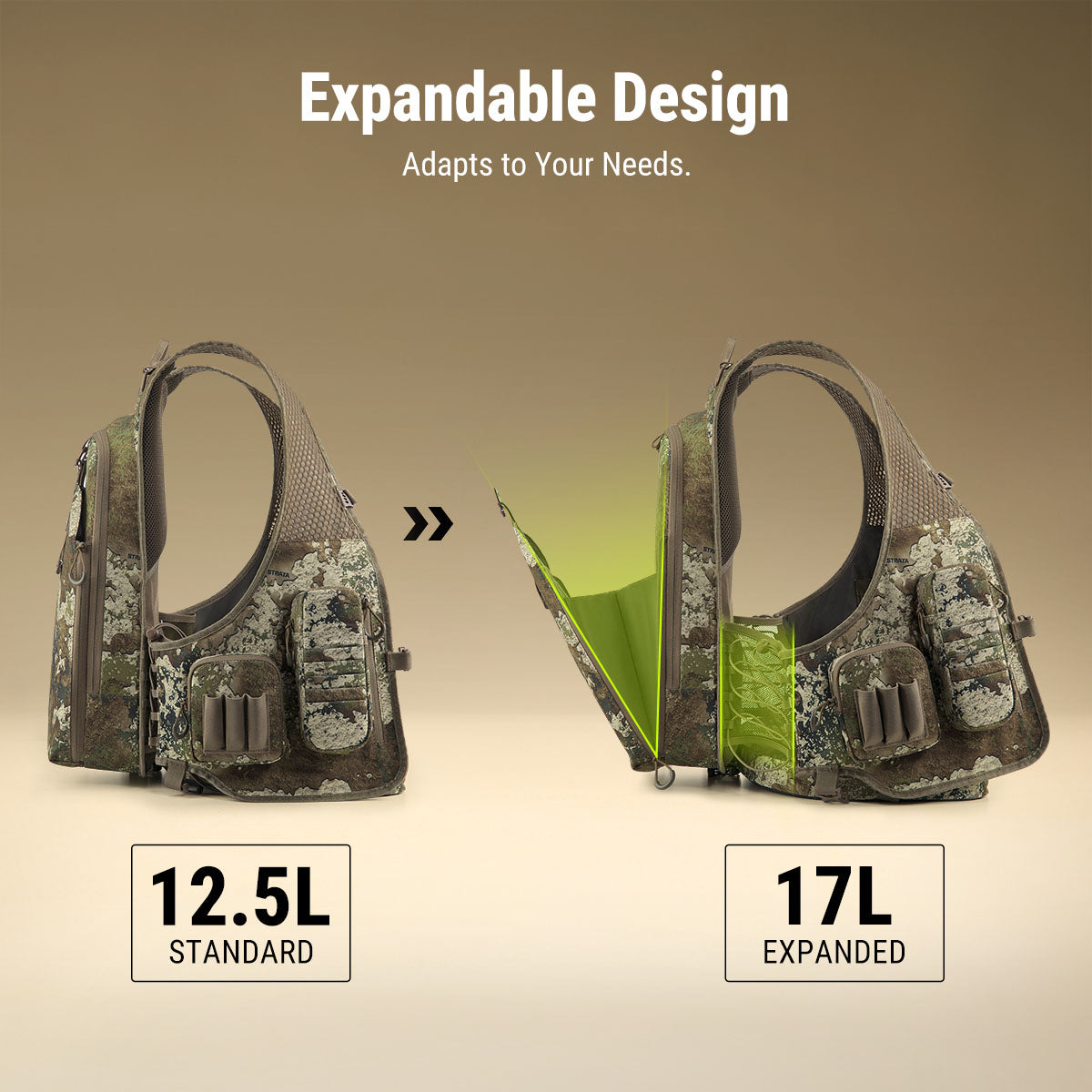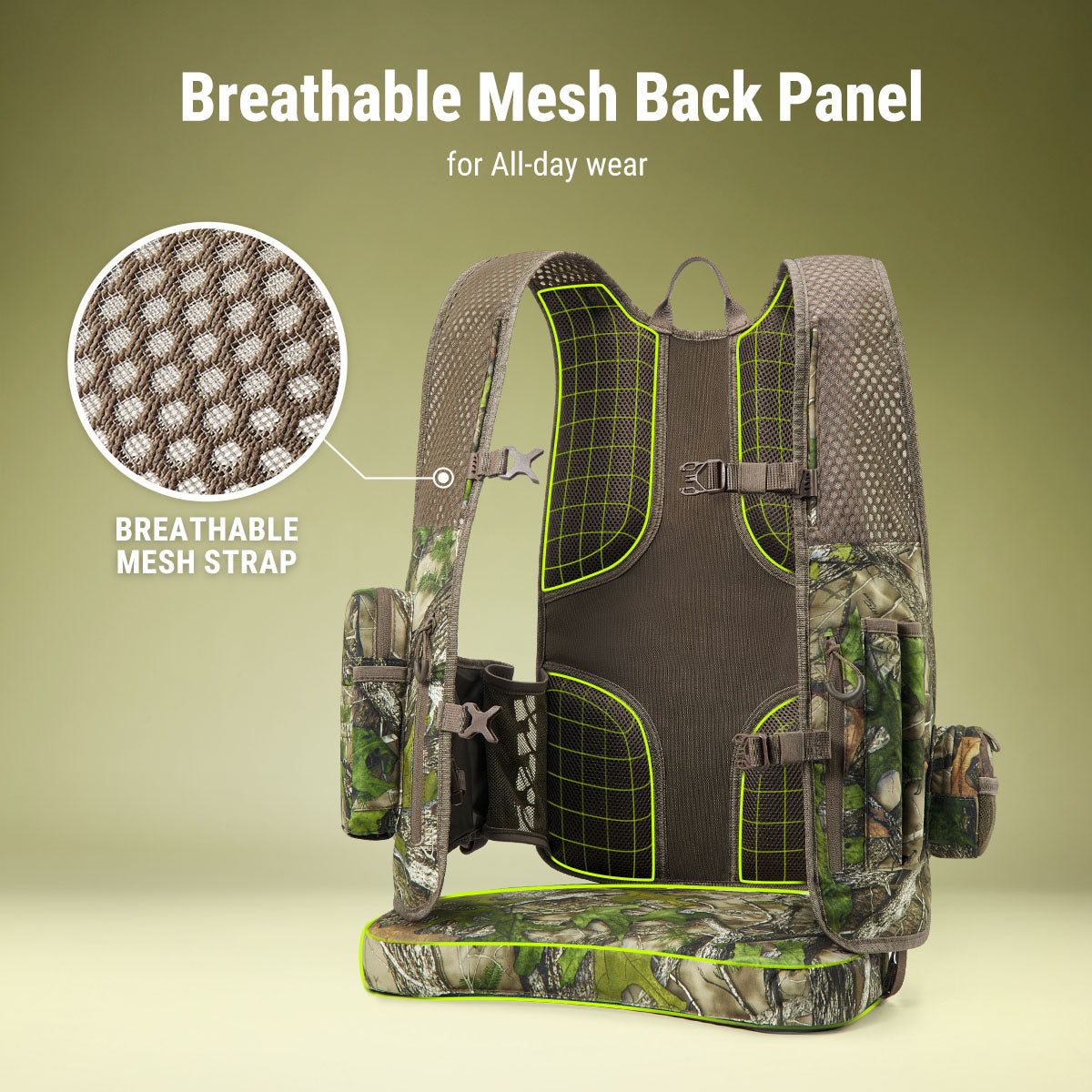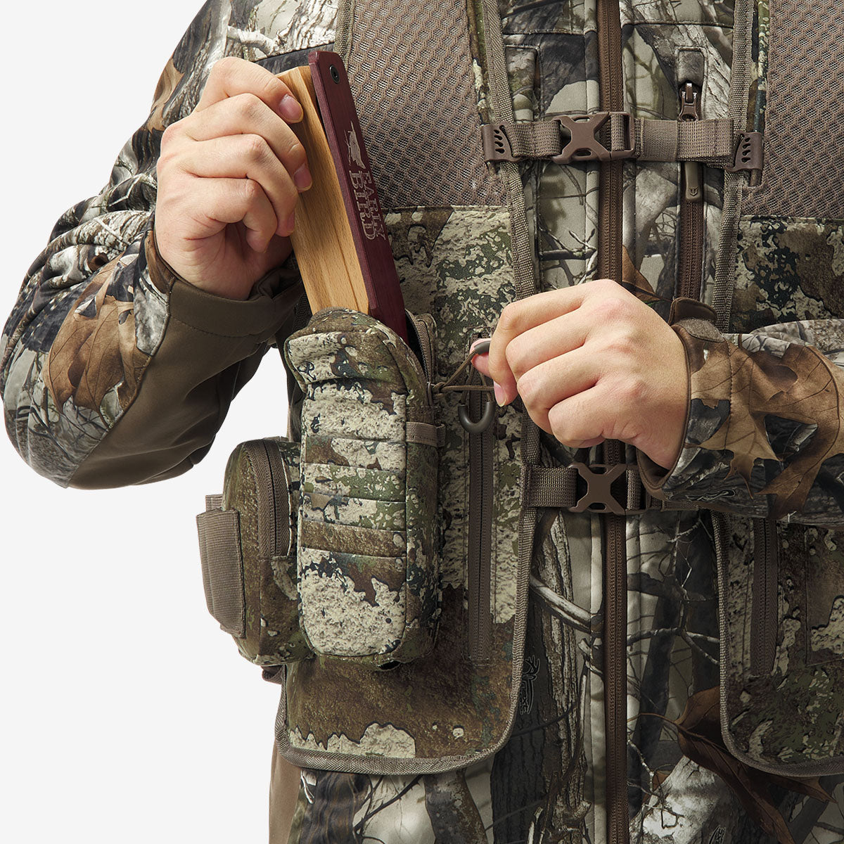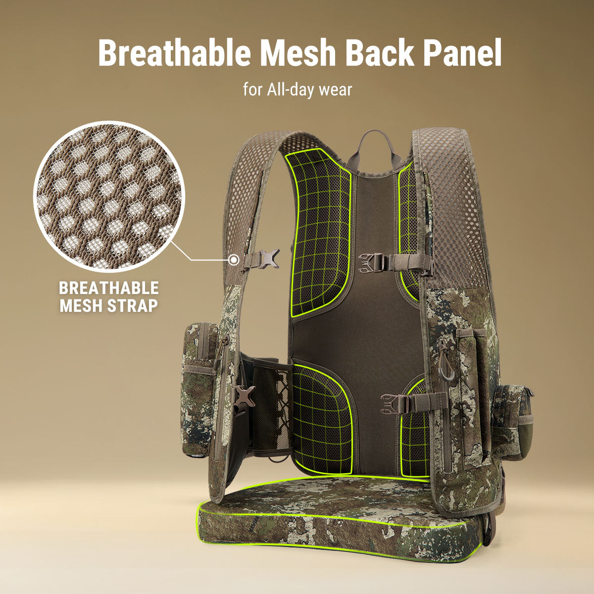 Designed for high-mobility turkey hunters, this vest features an ultra-light, vest-style fit that allows full freedom of movement for mobile turkey hunting.