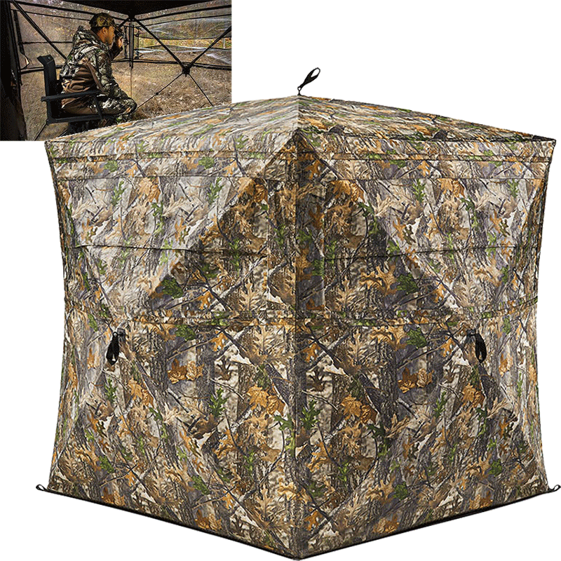 Features Hunters Need: TIDEWE’s hunting ground blinds are made of three sides noise-free sliding windows, which will assist you in remaining undetected while hunting. Brush-in loops with the camo that covers the entire blind give you the confidence that your blind will become one with surrounding habitat.