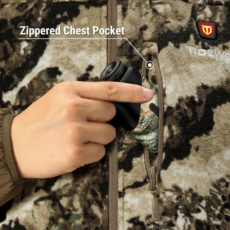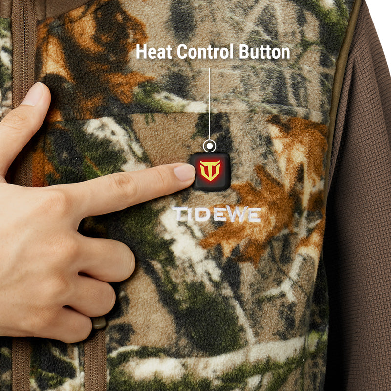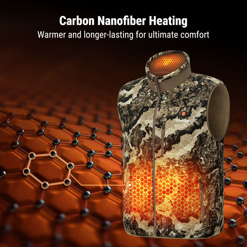 This polar fleece heated vest is designed to be worn as a mid-layer under a jacket. It features double-sided polar fleece for enhanced warmth, offering outstanding comfort, wind resistance, and cold protection. The silent polar fleece ensures hunters remain undetected. With 4 Carbon Nanofiber heating zones and up to 10 hours of heating, this vest provides lasting warmth for hunting, ice fishing, ice hockey, and outdoor work. Enjoy reliable warmth and comfort in any setting with this essential piece of gear.