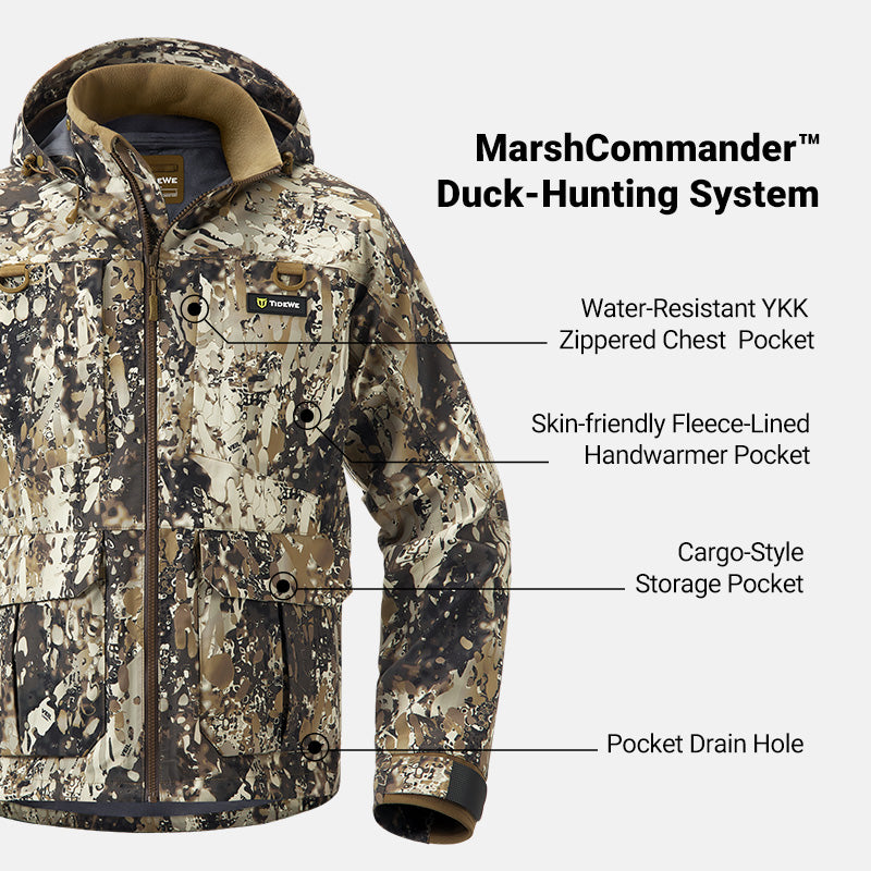 Waterfowl-Aimed MarshCommander™ Pocket System: Designed specifically for waterfowl hunters, the MarshCommander™ pocket system includes 6+1 pockets plus 2 pocket drain holes for secure storage,warm keeping and easy access to essential gear.