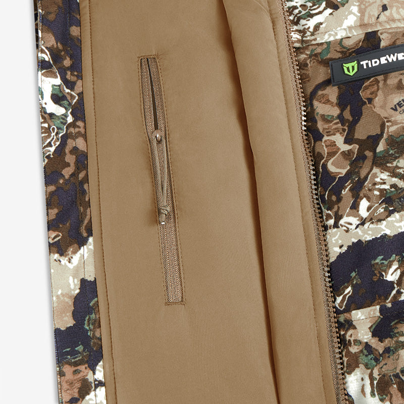 The jacket’s three-layer construction combines a DWR C0 and TPU membrane shell for water repellency, thermal insulation for warmth retention, and a ProTecht® PAO lining for odor control.