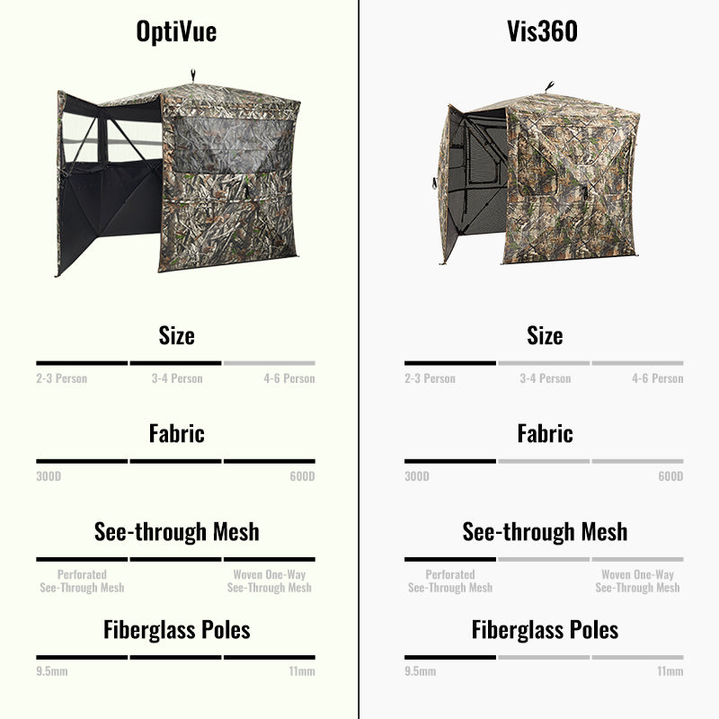 Convenient and Spacious Design: The OptiVue offers ultimate convenience with a 90° swing door for quick access and easy gear loading. Its pop-up design allows for fast setup and takedown, while the 600D PVC storage bag ensures extra protection and easy transport. Plus, it comfortably fits 3-4 people, making it ideal for group hunts.