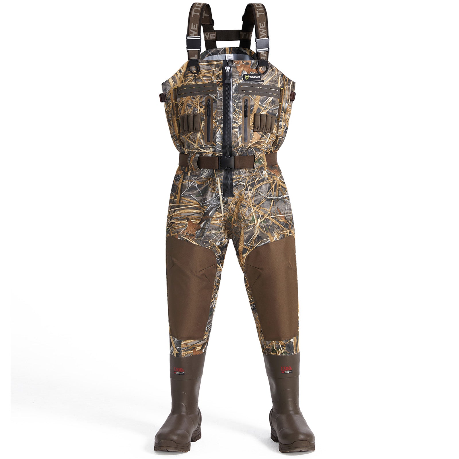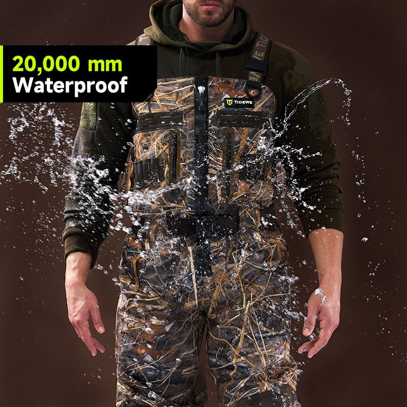 Ultimate Durability and Warmth: 1200G 3M™ Thinsulate boots provide consistent warmth in the water. The durable, wear-resistant polyester camo fabric, reinforced knees, and slip-resistant rubber-exterior boots ensure long-lasting performance, finished with TideWe’s customized Letter "T" design sole.