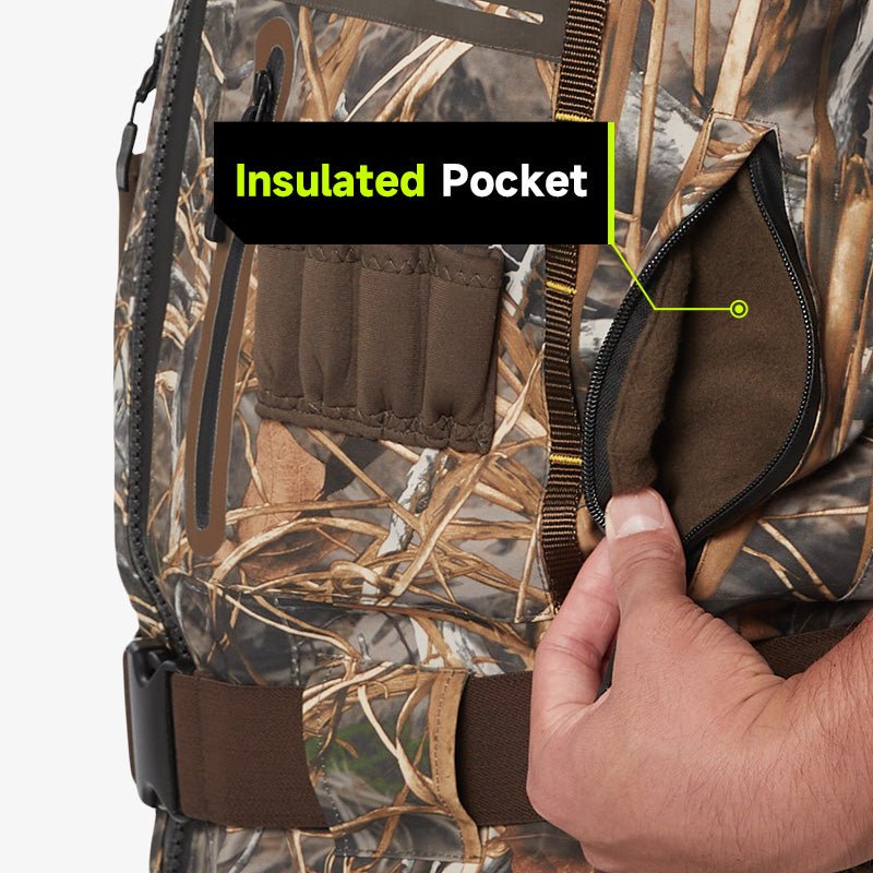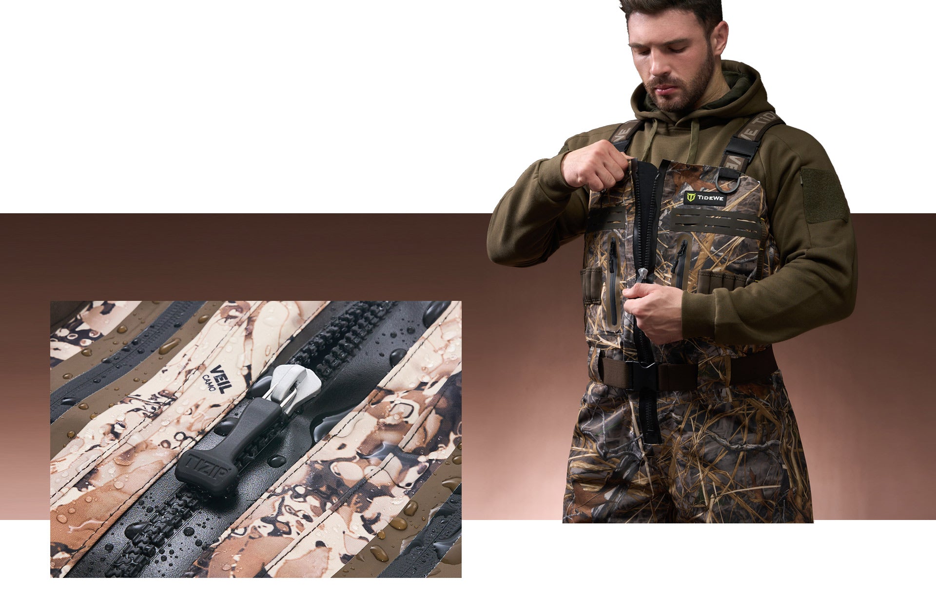 TIZIP® MasterSeal Waterproof Zipper: Featuring a 100% airtight, easy-to-use waterproof zipper, these waders provide maximum water protection and ease of wear.