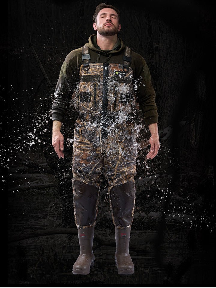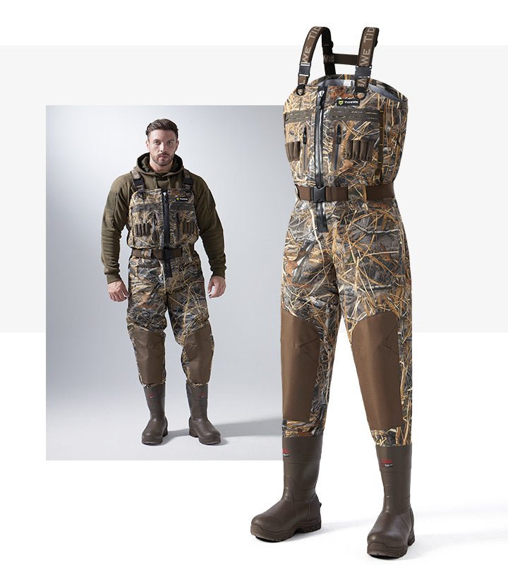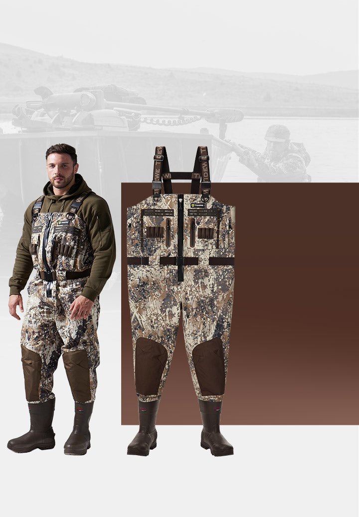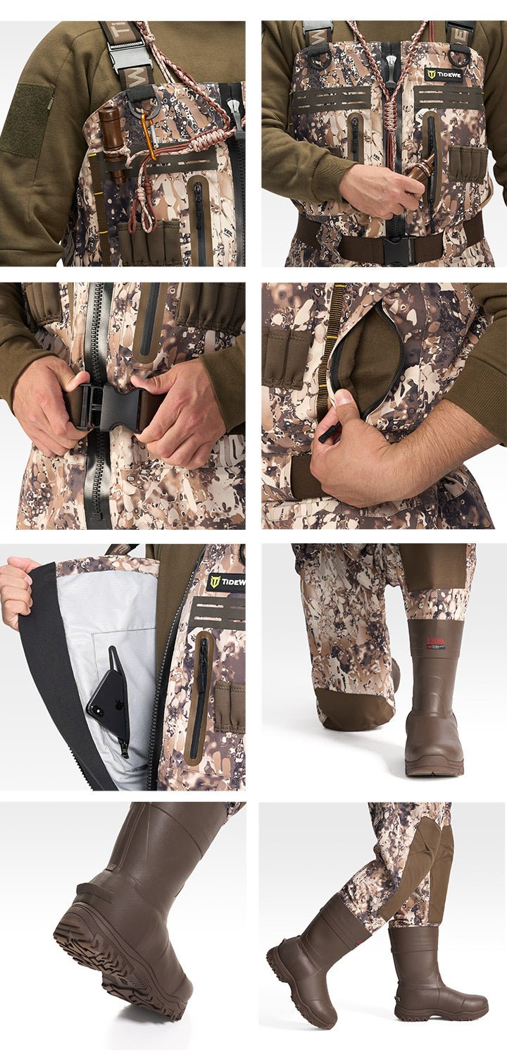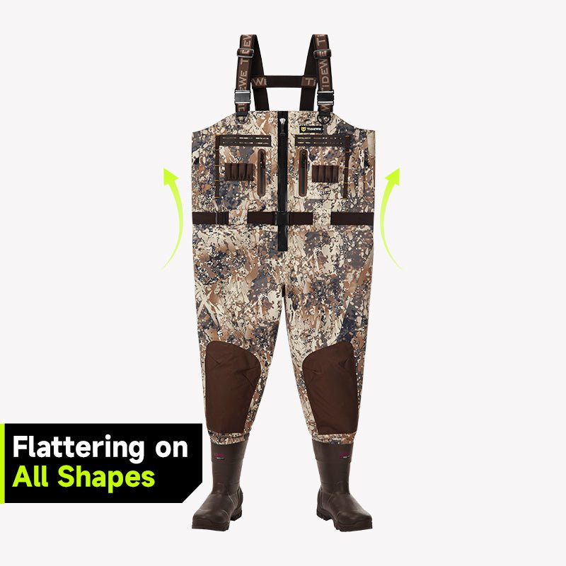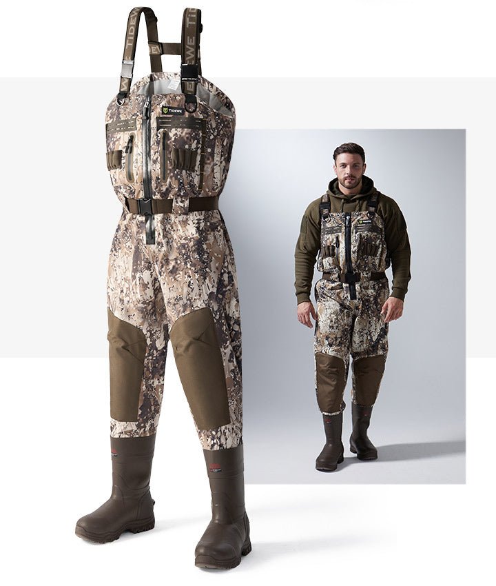 Ultimate Durability and Warmth: 1200G 3M™ Thinsulate boots provide consistent warmth in the water. The durable, wear-resistant polyester camo fabric, reinforced knees, and slip-resistant rubber-exterior boots ensure long-lasting performance, finished with TideWe’s customized Letter "T" design sole.