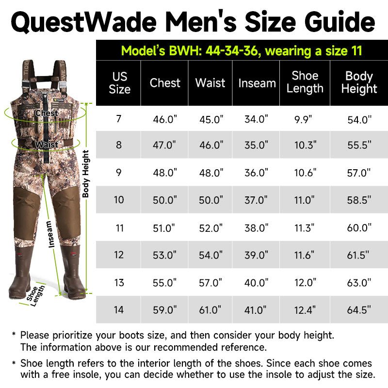 QuestWade waders are built for the serious outdoor enthusiast who demands performance, durability, and comfort. The elite waders are ergonomically designed for an optimal fit. Free to move, free to be!