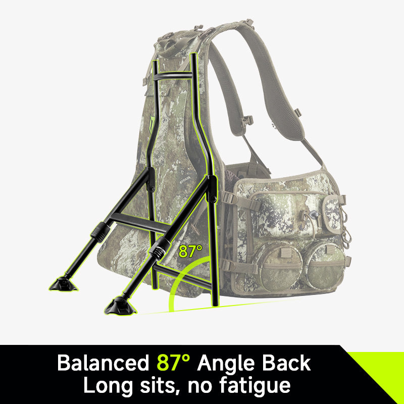 Durability and Stealth: Made with tear-resistant 600D fabric, reinforced with double stitching and PVC synthetic leather in high-wear areas, the StrutBack is built to withstand the elements. Its silent fabric and camo design provide the perfect balance of durability and concealment in the field.