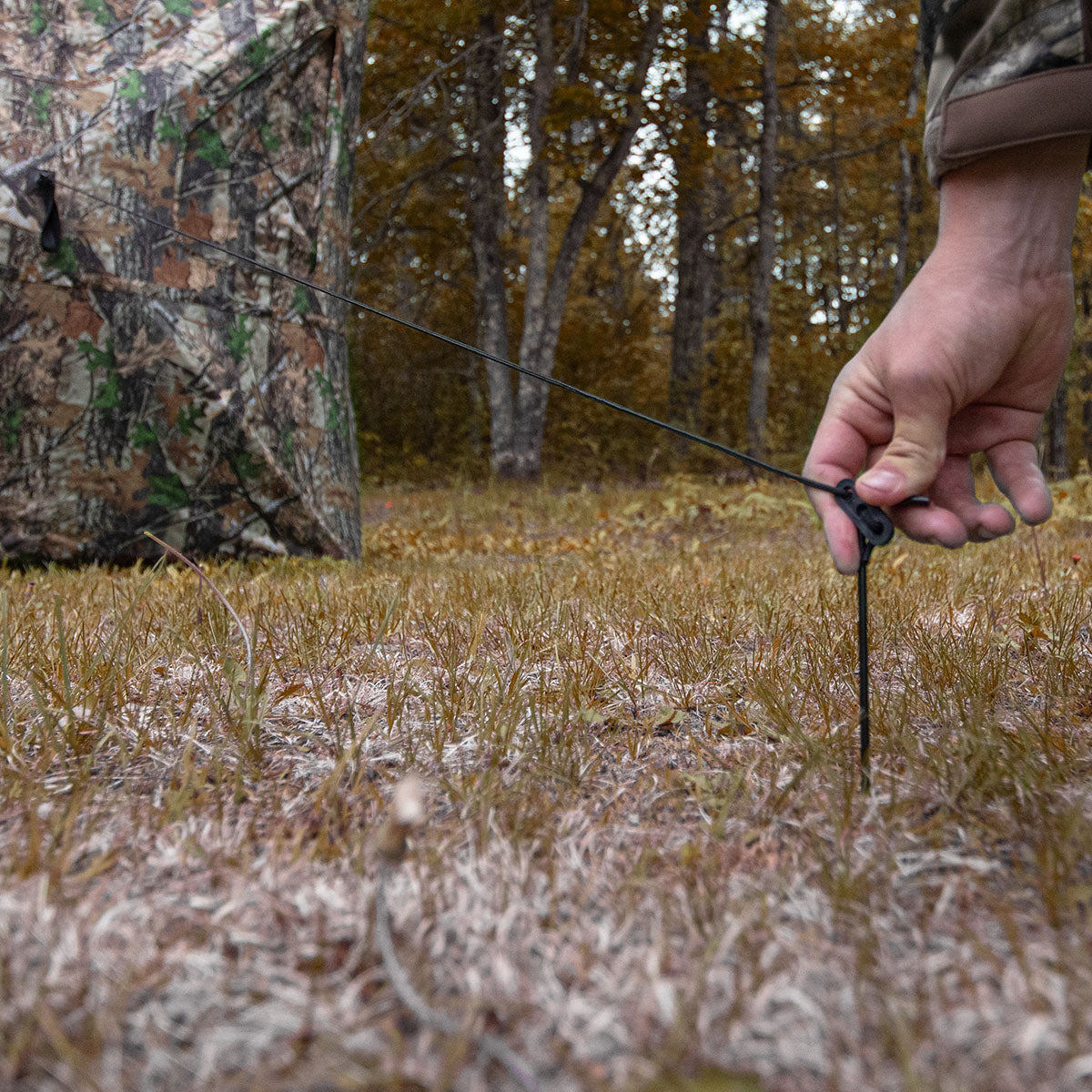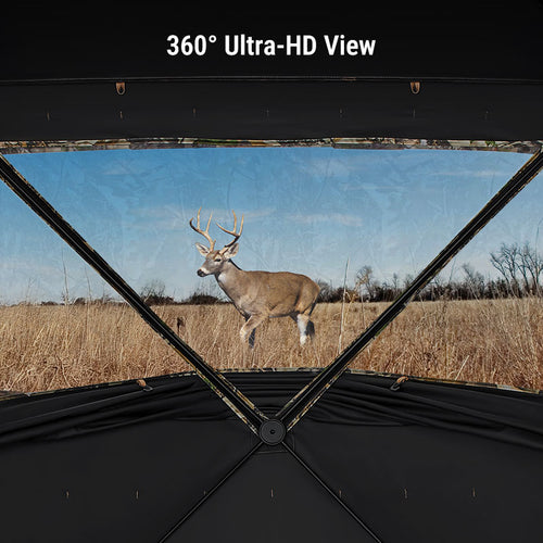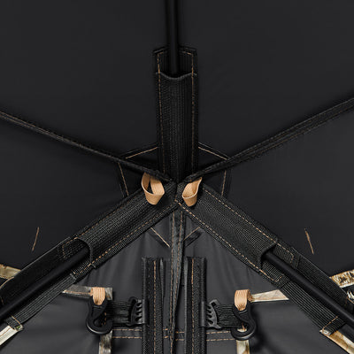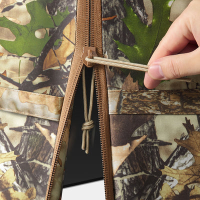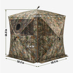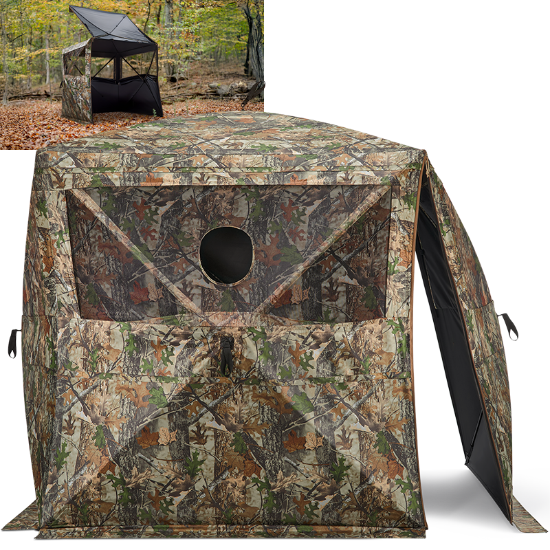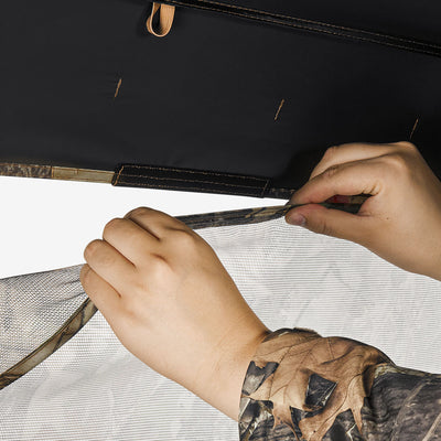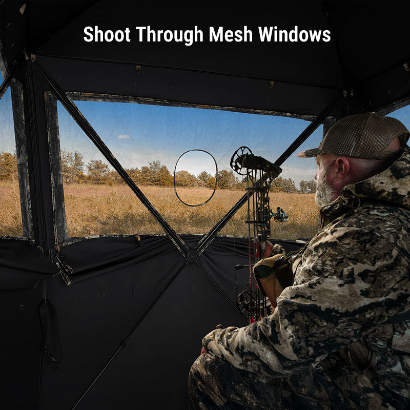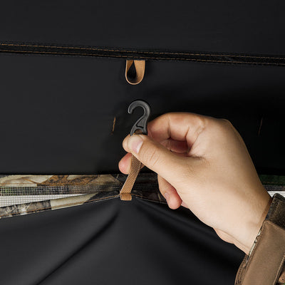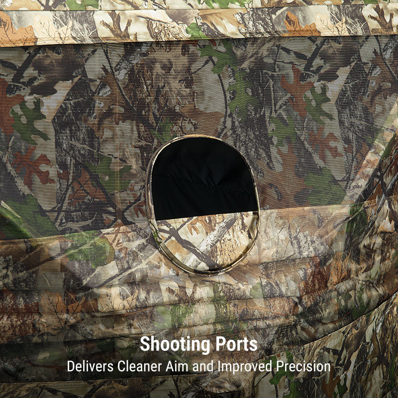 This archery hunting blind is specifically designed for bowhunters who demand stealth and high performance. It features shoot-through mesh that provides a clear view, allowing you to shoot directly through the mesh without any obstruction. The blackout cover and extended ground edge eliminate light leaks and shadows, ensuring complete concealment.