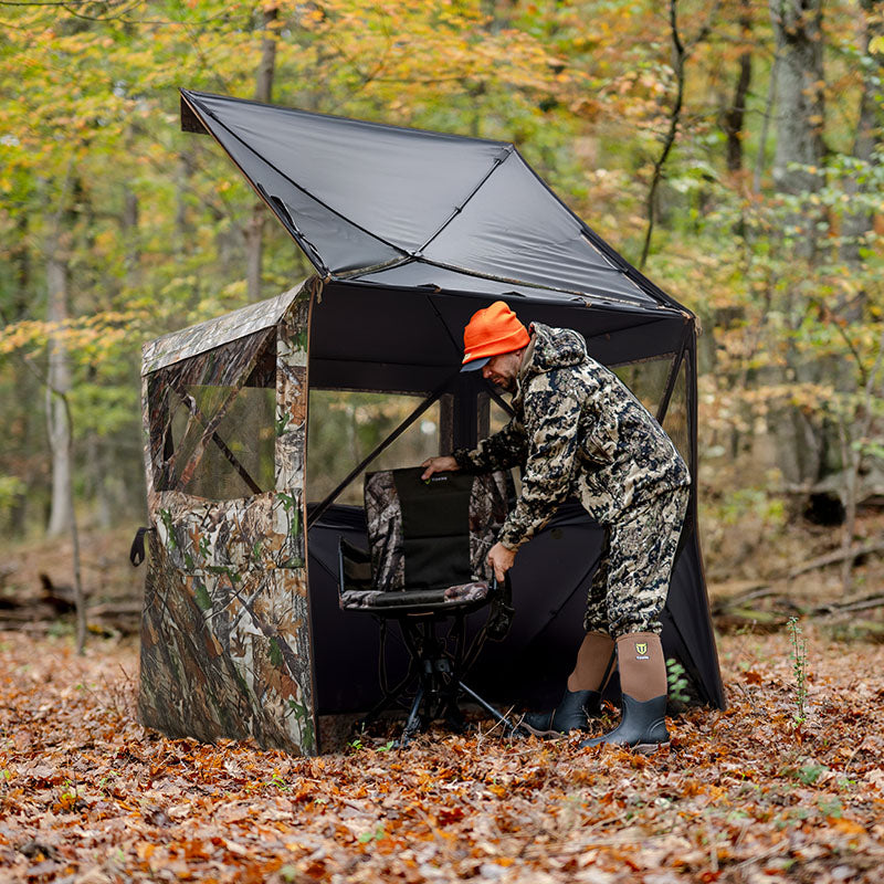 - Comfortably accommodates larger-bodied hunters without bending or squeezing.
