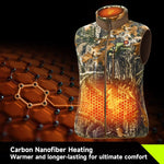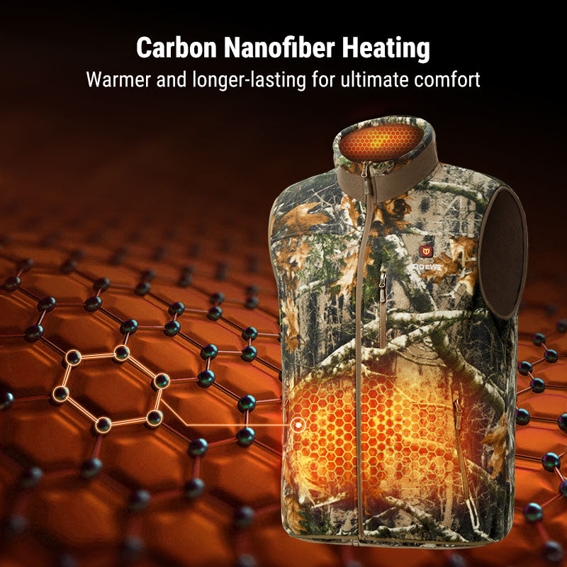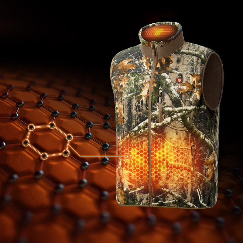 This polar fleece heated vest is designed to be worn as a mid-layer under a jacket. It features double-sided polar fleece for enhanced warmth, offering outstanding comfort, wind resistance, and cold protection. The silent polar fleece ensures hunters remain undetected. With 4 Carbon Nanofiber heating zones and up to 10 hours of heating, this vest provides lasting warmth for hunting, ice fishing, ice hockey, and outdoor work. Enjoy reliable warmth and comfort in any setting with this essential piece of gear.