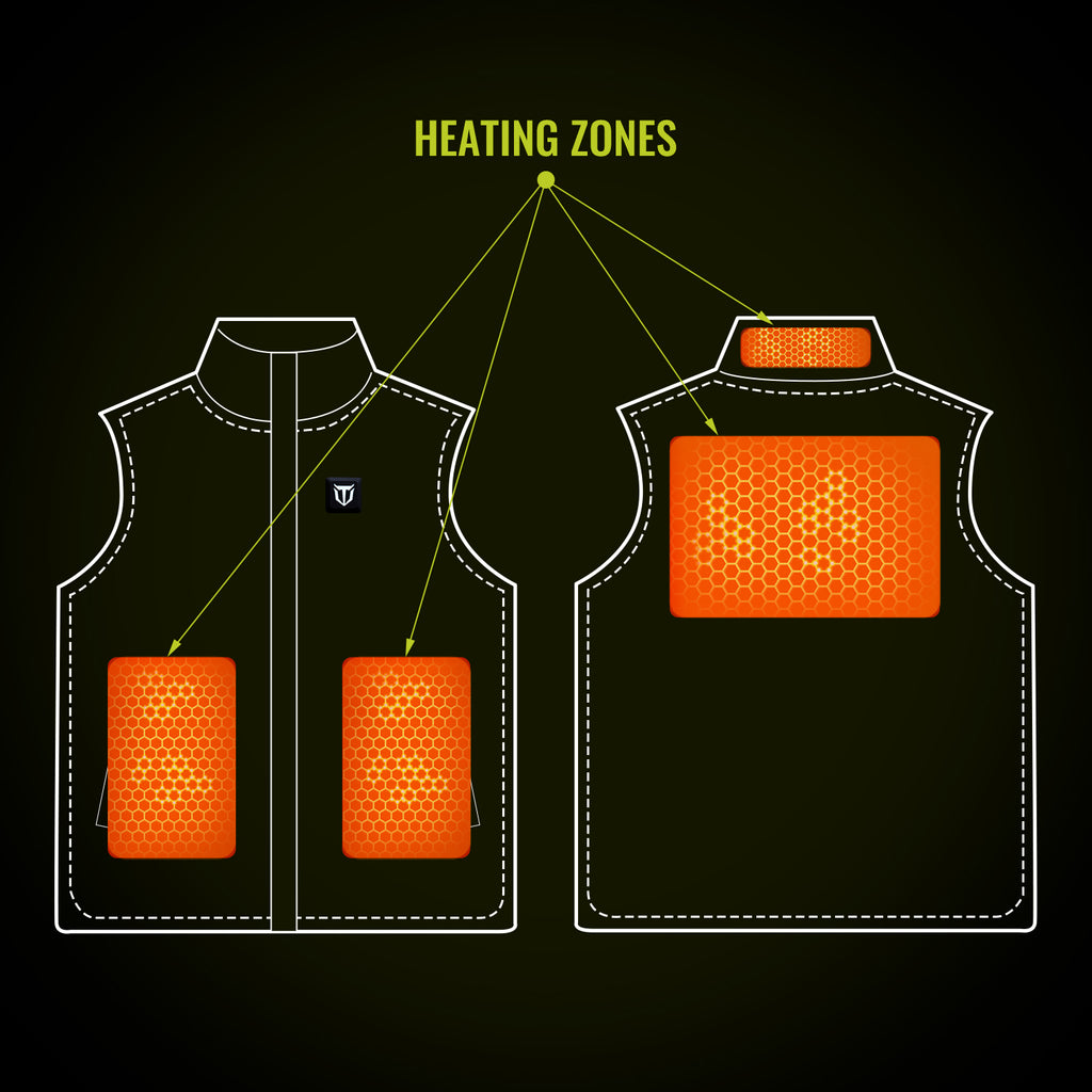 4 ultra-fine carbon fiber heating zones that are designed to keep your core warm. With 3 heating settings you can adjust your body temperature to match any situation.