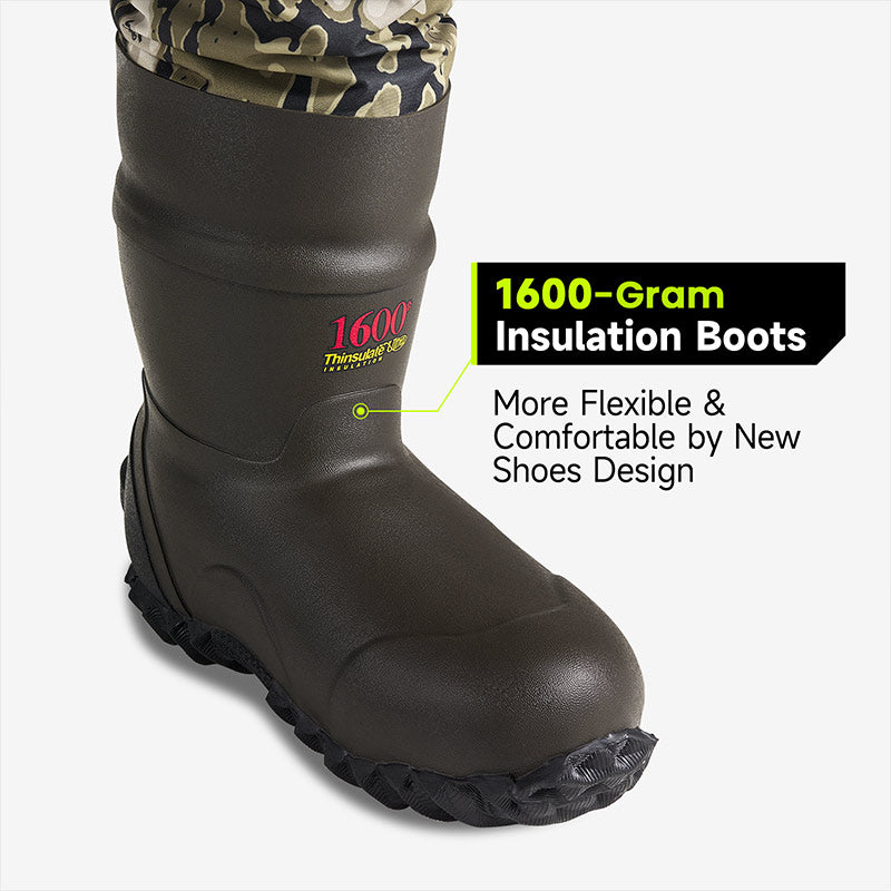 AquaWade Pro Insulated Waders | 1600 Gram Breathable Waterproof Bootfoot Chest Waders for Duck Hunting | Durable Men’s Nylon Camo Hunting Bibs