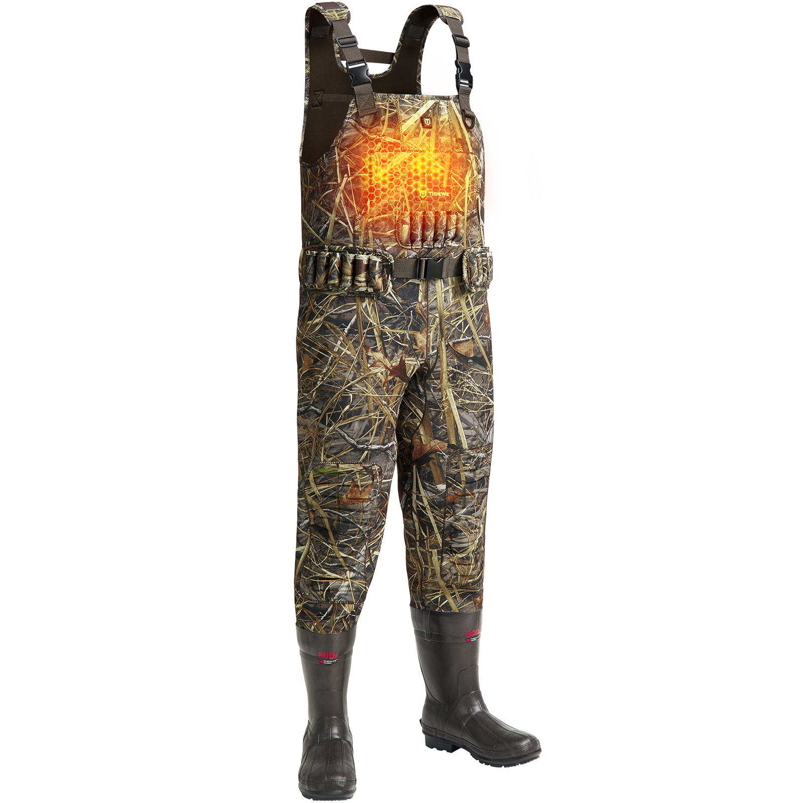 TorridSeeker Heated Waders for Men | Neoprene Bootfoot Chest Waterproof Insulated Waders | Heated Waterfowl Hunting Bibs for Cold Weather