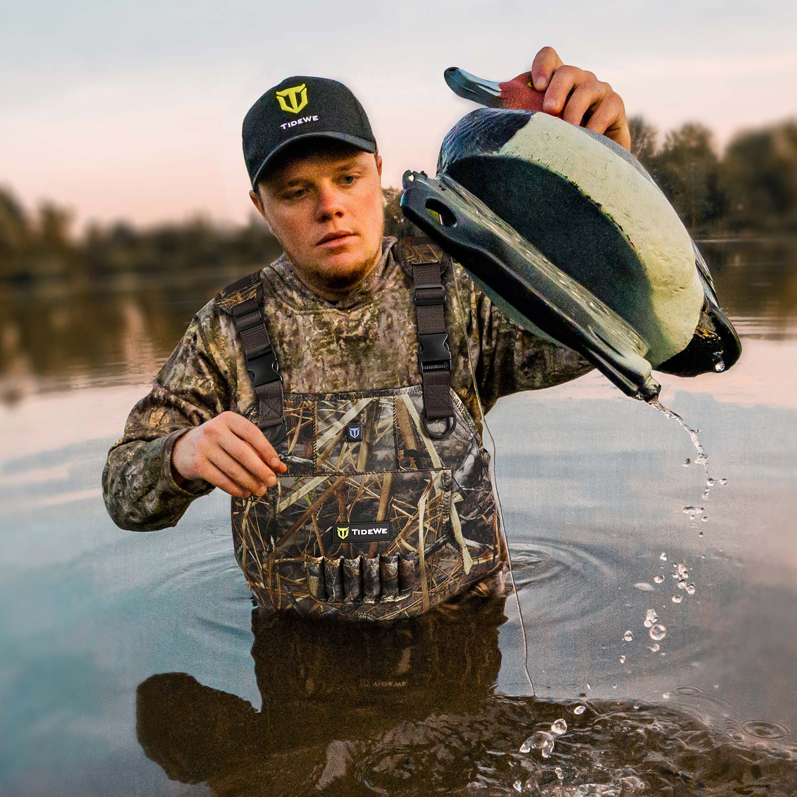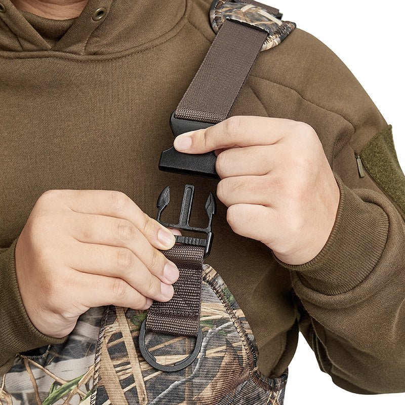 Adjustable & User-Friendly: Adjustable neoprene suspenders with and loop attachments allow you to pull the waders on and off super easily due to the simple design. Quick-drain chest hand-warmer pocket with small pocket inside to keep things dry. Removable 12 shell holder belt keeps shells easily accessible for quick reloading.