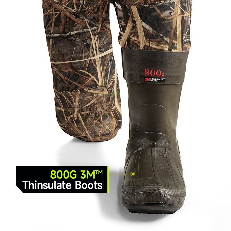 Sturdy & Durable: 3.5 mm neoprene upper with tough poly / jersey shell and stretch liner and triple-finished seams that are stitched, glued and taped, makes it extra solid and durable, you will always have peace of mind that your waders will perform while out in the waters and woods hunting and fishing.