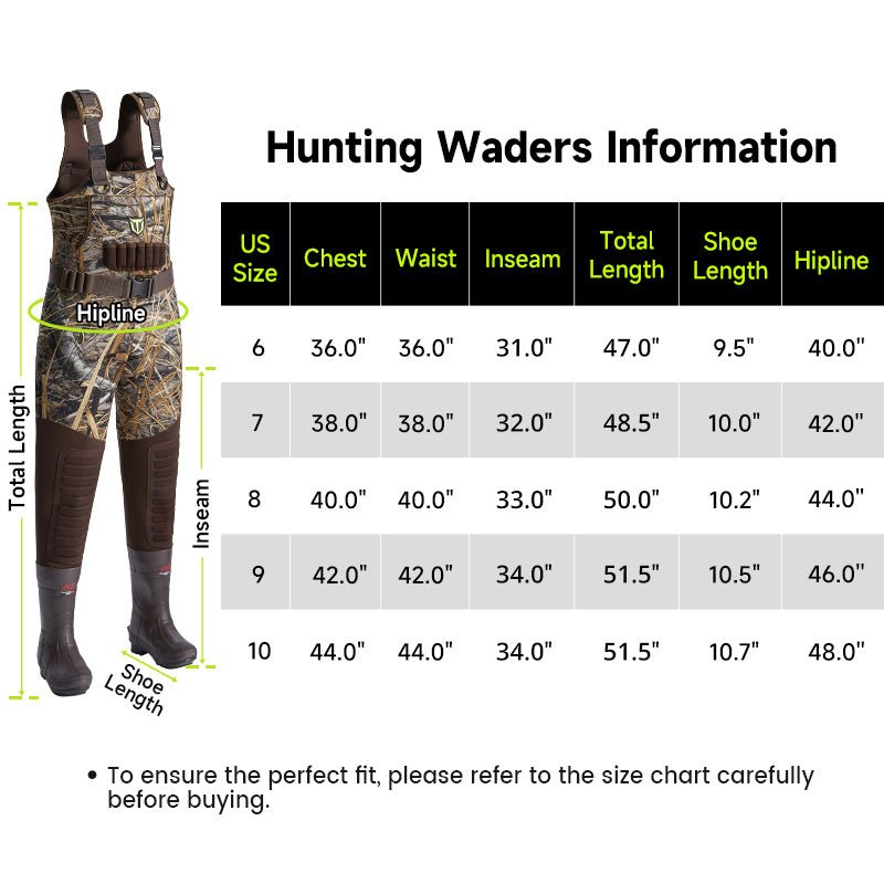 MarshWarrior waders showcase a distinctive design with stylish brown and camouflage stitching that enhances their visual appeal. Moreover, we have also introduced women's and children's sizes, they are perfect for the whole family to enjoy hunting and fishing together.