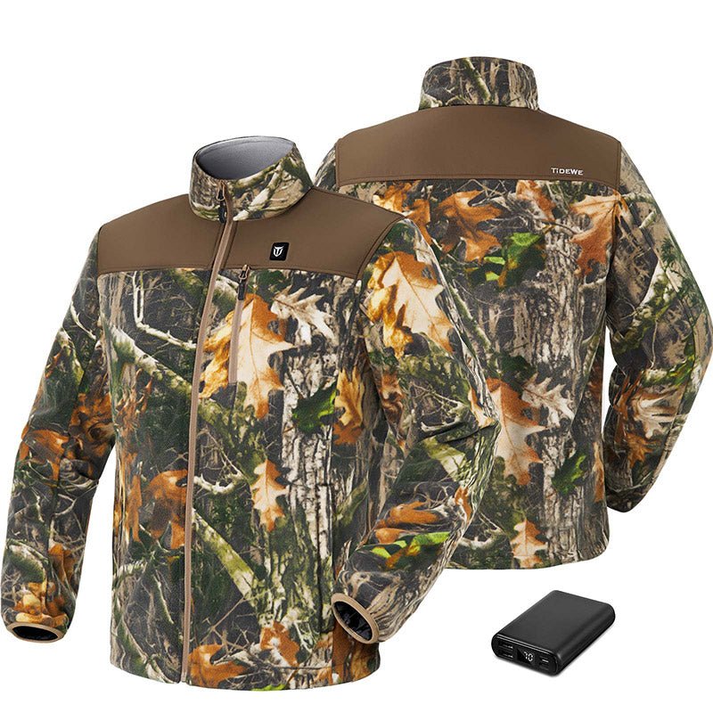 Men’s Heated Jacket Fleece with Battery Pack, Rechargeable Coat for Hunting (Black, Camo, Size S-XXXL)