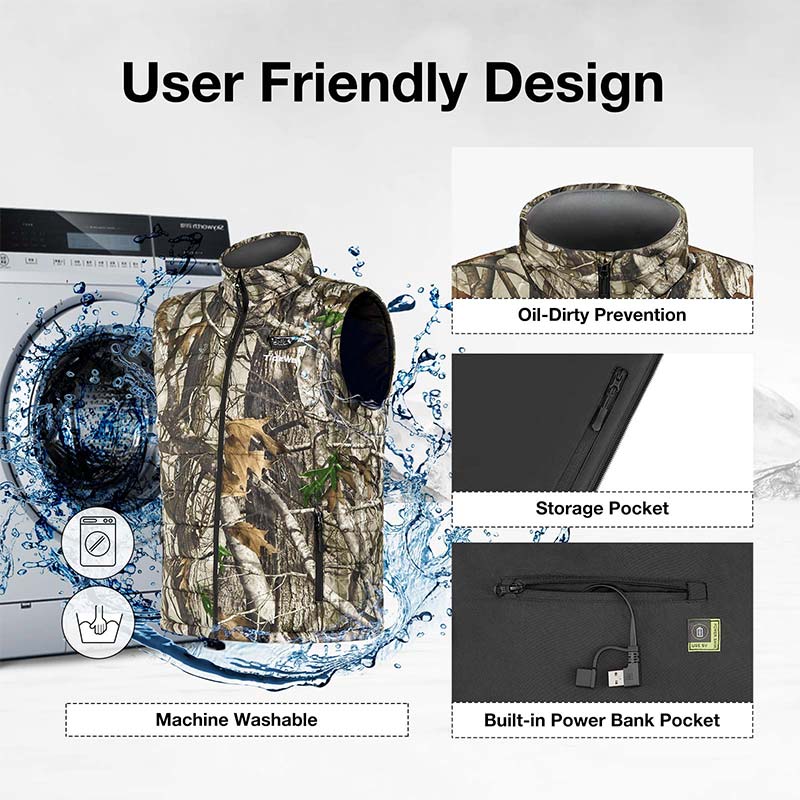High Quality & Easy Care: High-quality polyester material delivers incredible durability along with warmth and comfort. TIDEWE's heated vest for men is designed to endure being machine washed more than 50 times! Air-drying is suggested to protect heating elements.