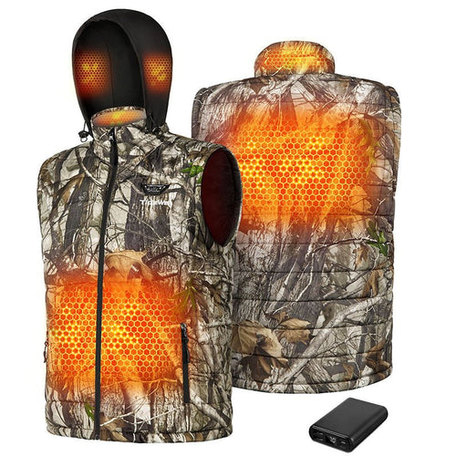 Men's Heated Vest with Retractable Heated Hood and Battery Pack for Hunting/Hiking (Black & Next Camo G2, S-XXXL)