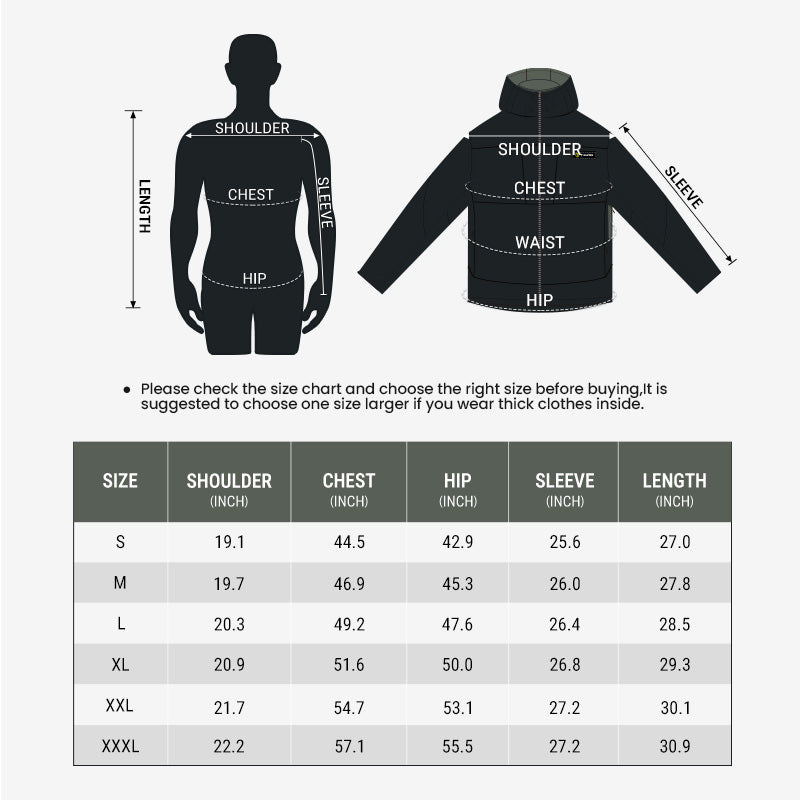 The TimberGhost Silent Windproof Whitetail Hunting Jacket is designed to layer comfortably over a base layer and a mid-layer heated jacket, fitting seamlessly under an outer bib in the same size. Only choose a larger size if you measure between sizes or prefer a looser fit.