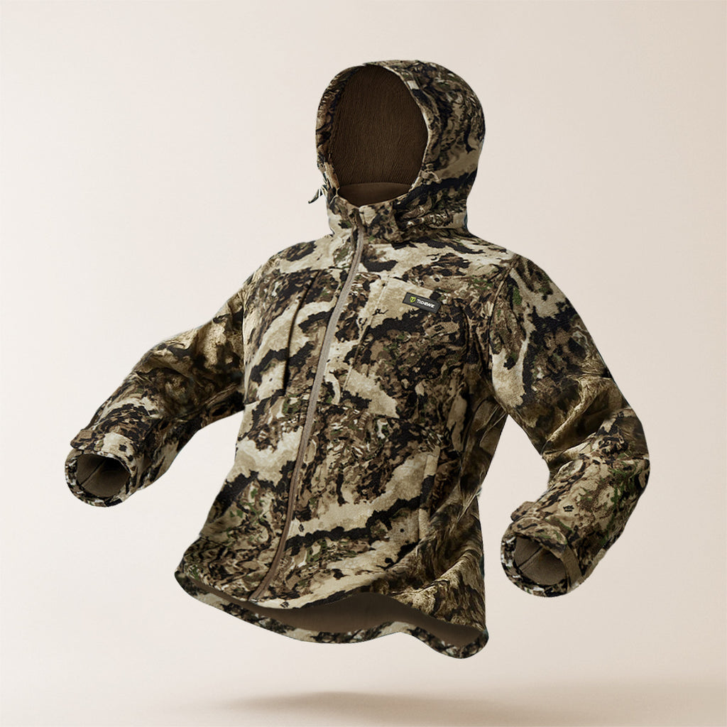 Designed for North American Whitetail hunters, this triple-layer fleece softshell with TideShell™ delivers superior wind and water resistance, stealth-level quietness, and lasting warmth—ideal for cold, damp, high-wind hunts from treestand or ground blind.