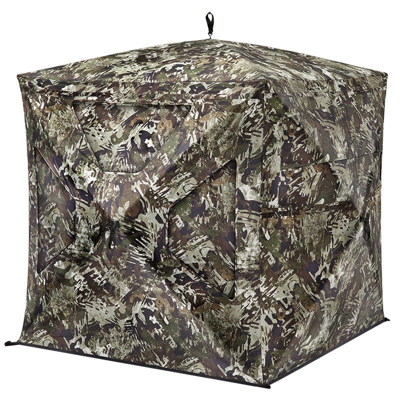 Adequate Space: Dimensions: 66”height, hub to hub 75" x 75", and with a floor space of 58" x 58". TIDEWE hunting blinds can comfortably accommodate two or three hunters. And there is a large triangular magnetic door, which offers a silent and easy entry/exit.